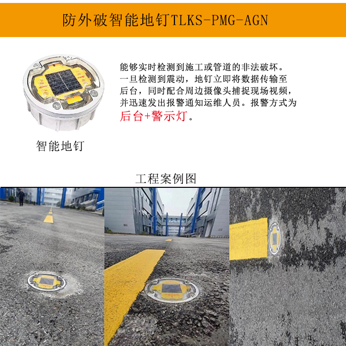 在現(xiàn)代都市中,地下基礎(chǔ)設(shè)施如同城市的隱形血脈,支撐著城市的正常運(yùn)轉(zhuǎn)。然而,施工破壞、非法挖掘等潛在威脅時(shí)刻威脅著這些“生命線”的安全。傳統(tǒng)的監(jiān)測手段往往滯后,難以提供及時(shí)有效的預(yù)警。為此,我們創(chuàng)新推出了TLKS-PMG-AGN電纜防外破地釘,這款專為城市地下基礎(chǔ)設(shè)施設(shè)計(jì)的智能監(jiān)測裝置,以先進(jìn)的預(yù)警機(jī)制和高精度監(jiān)測技術(shù),為城市地下安全筑起了一道堅(jiān)實(shí)的防線。