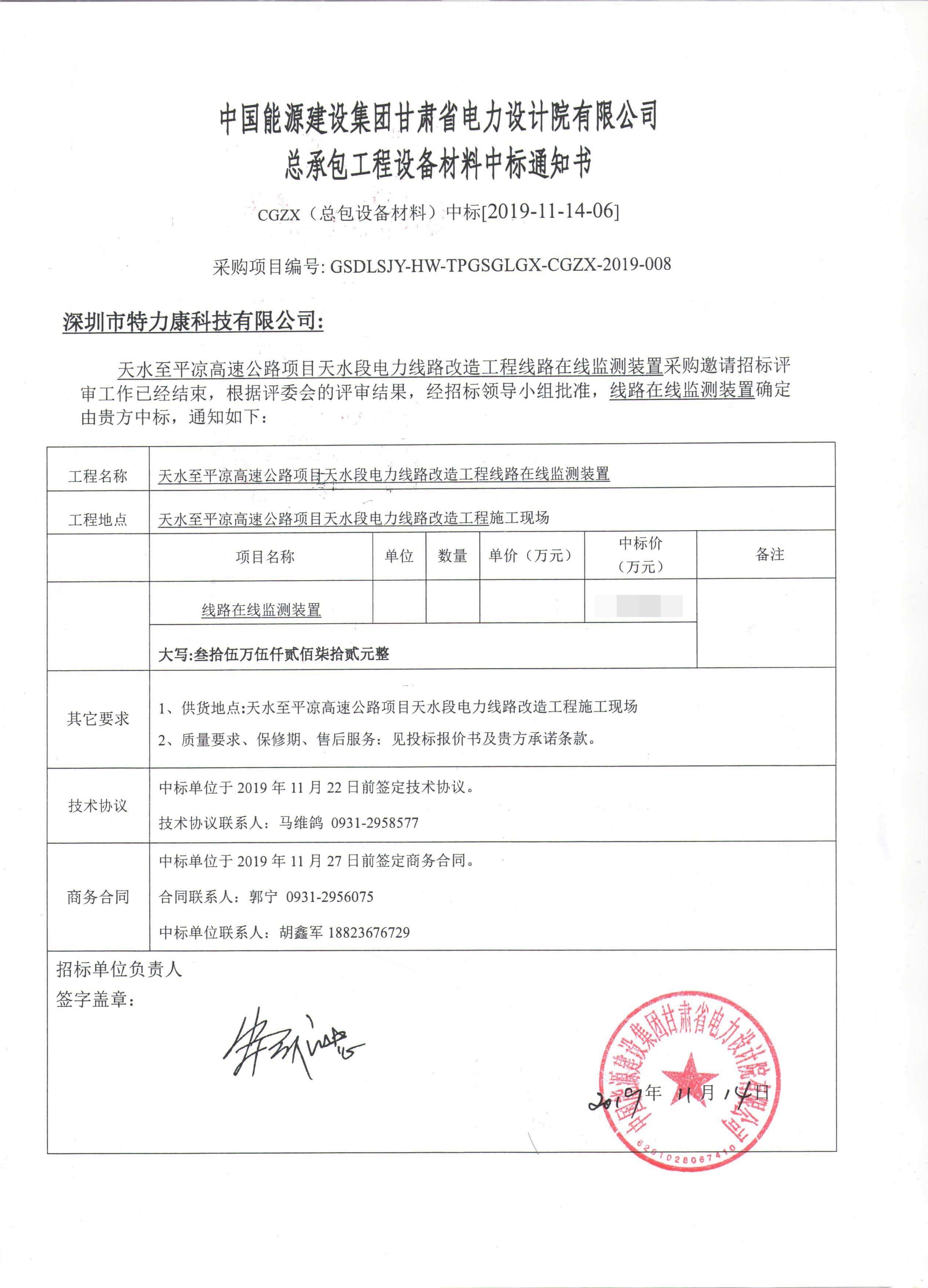 特力康中標國網(wǎng)黑龍江送變電工程公司的2024年度第18次物資類競爭性談判采購項目——慶陽驅鳥器物資框 特力康中標國網(wǎng)甘肅省電力公司省管產業(yè)單位2024年第五次物資競爭性談判授權采購項目 中標喜訊:深圳市特力康科技有限公司成功入圍許繼集團綜合能源公司輸電線路視頻在線監(jiān)測裝置模塊集采項目 中標喜訊:特力康成功中標國網(wǎng)重慶市電力公司渝中一片區(qū)項目 特力康成功中標國網(wǎng)天津市電力公司2024年第二次?物?資招標項目 特力康中標國網(wǎng)安徽省電力有限公司蕪湖供電公司2024年3月非物質采購項目 特力康架空輸電線路視頻在線監(jiān)測裝置,筑牢四川電力監(jiān)控防線 智捕舞動 筑牢湖北電網(wǎng)防線——特力康輸電線路防舞動監(jiān)測系統(tǒng) 多維驅鳥 精準護線——特力康一體驅鳥器筑牢河南電網(wǎng)安全屏障 拉力感知 精準防冰——特力康高壓輸電線路導線覆冰在線監(jiān)測裝置守護貴州電網(wǎng)生命線 未冰先防 精準預判——特力康模擬覆冰裝置守護遼寧電網(wǎng)寒冬生命線 特力康架空輸電線路故障監(jiān)拍裝置,筑牢湖南電網(wǎng)安全防線 特力康輸電線路微波覆冰在線監(jiān)測裝置,守護湖北電網(wǎng)寒冬安全 特力康架空輸電線路導線弧垂監(jiān)測裝置,守護湖北輸電線路弧垂安全 特力康輸電線路防外力破壞系統(tǒng),為江西境內綿延的輸電線路筑起“主動防護屏障”。 特力康北斗桿塔傾斜在線監(jiān)測裝置,守護山西電網(wǎng)桿塔穩(wěn)定 特力康高壓輸電線路導線覆冰在線監(jiān)測裝置,為河南電網(wǎng)覆冰護航 鄂電穩(wěn)線“哨兵”:特力康舞動監(jiān)測裝置守護超高壓線路舞動安全 重慶變電站“防鳥衛(wèi)士”:特力康一體化驅鳥器守護山城電網(wǎng) 特力康輸電線路智能AI多目監(jiān)控裝置+傾斜監(jiān)測守護山西輸電生命線 鄂網(wǎng)“全景眼”:特力康一體化視頻監(jiān)控系統(tǒng)守護輸電線路 山東電網(wǎng) “穩(wěn)塔哨兵”:特力康智能桿塔傾斜監(jiān)測預警裝置筑牢電力桿塔安全防線 寧夏配電線路安裝了我司防外破電子化智能警示牌